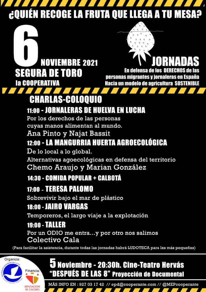 EL 6 DE NOVIEMBRE EN SEGURA DE TORO TENDREMOS LAS JORNADAS «QUIÉN RECOGE LA FRUTA QUE LLEGA A TU MESA» EN DEFENSA DE LOS DERECHOS DE LAS PERSONAS MIGRANTES Y JORNALERAS EN ESPAÑA Y POR UN MODELO DE AGRICULTURA SOSTENIBLE