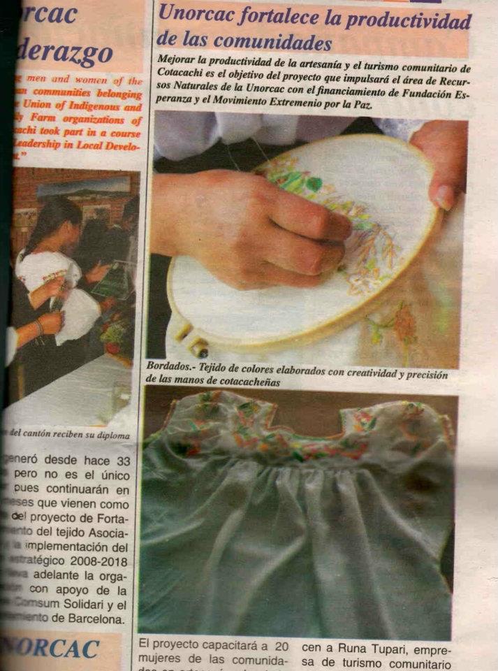 ECUADOR 2012. «MEJORA DE LA PRODUCTIVIDAD EN EL TURISMO Y ARTESANÍA PARA LA POBLACIÓN RETORNADA DE COMUNIDADES INDÍGENAS DEL CATÓN DE COTACACHI»