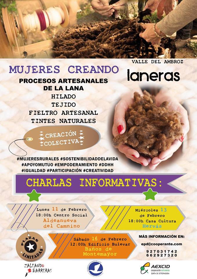 👉🏽 Desde Zaleando Barreras proyecto de Educación para el Desarrollo de Movimiento Extremeño por la Paz queremos invitarte a participar en 🙌🏽 MUJERES CREANDO 🙌🏽 en el Valle del Ambroz, desarrollado por 🐑 LANERAS 🐑 disfrutaremos conociendo los procesos artesanales de la lana y realizaremos una creación colectiva con las mujeres del Valle.
