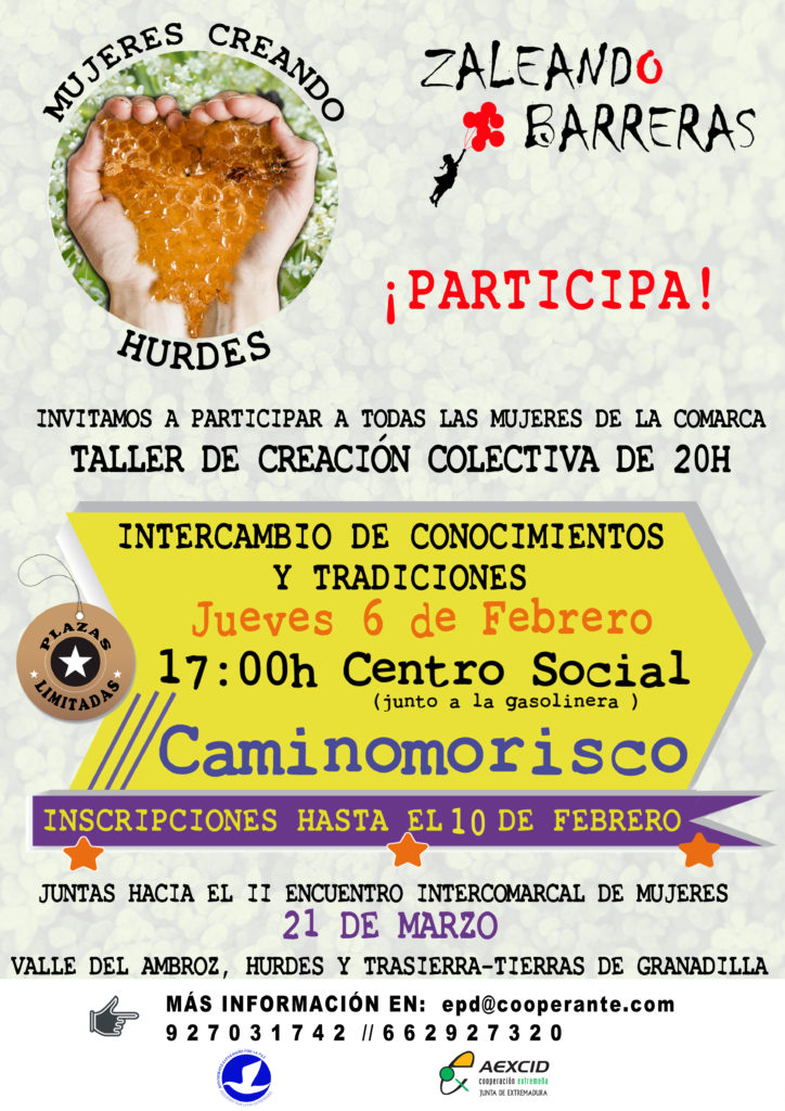 Después de las intervenciones en Zaleando Barreras 1 y 2 con el colectivo de mujeres rurales, y recogiendo las impresiones y evaluaciones de las participantes y las oficinas de igualdad, vemos conveniente iniciar un proceso más profundo y continuado con ellas. Este proceso, se materializará en un curso que, por un lado, hará que se visualice el trabajo y la labor que vienen ejerciendo las mujeres para la sostenibilidad de la vida en los entornos rurales en el norte de Extremadura; y por otro lado, de una manera participativa, de apoyo mutuo, creativa, y recuperando oficios tradicionales, se trabajará el empoderamiento y la lucha por la consecución de los Derechos Humanos de las mujeres vulnerados en nuestro entorno y a nivel mundial.
