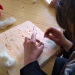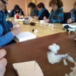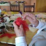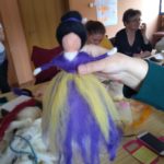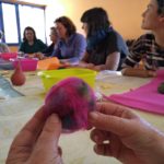 Las técnicas artesanas que utilizamos para procesar y transformar la lana comprenden un conjunto de procedmientos que, además de los beneficios grupales que aportan, collevan grandes ventajas individuales tanto en el plano físico como en el psicológico. Trabajar con las manos, y en concreto las práticas de hilar o afieltrar, provocan una serie de respuestas en el organismo, como la reducción del estrés y la depresión, facilitando la relajación y la mejora del estado de ánimo, impulsando la creatividad para trabajar nuestra creacion colectiva.