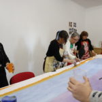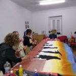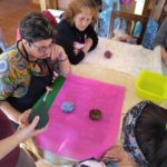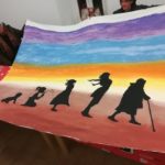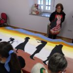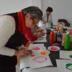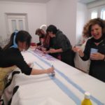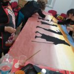 Entre todas decidimos plasmar esta idea mediante pintura en tela ya que las diversas capacidades a desarrollar a través de la pintura afloran cuando lo hacemos de manera colectiva e intercambiamos conocimientos, aprendemos diferentes técnicas de estampación natural o plantillas y esta idea se materializa como un mural sobre tela para hacerla visible.
