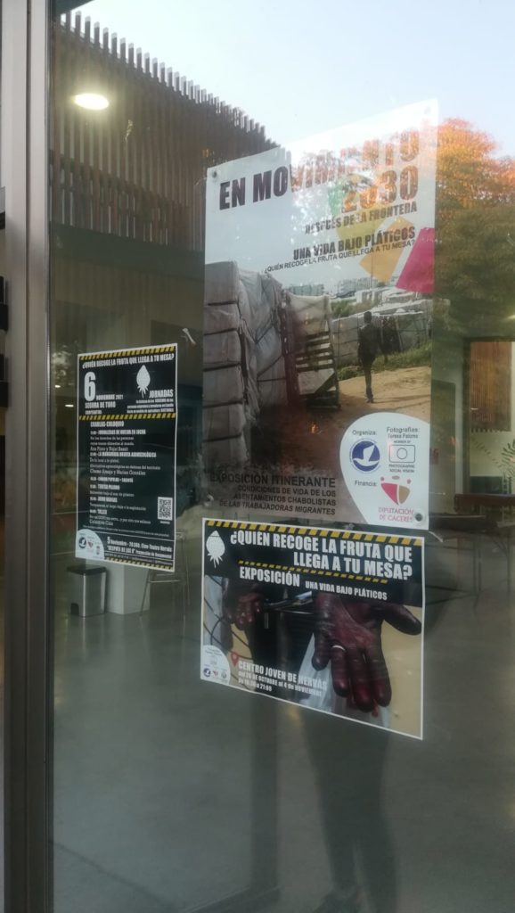 Será un día repleto de actividades con diferentes charlas-coloquio, en la que participarán ponentes expertas y activistas que trabajan en pro de los derechos de las personas migrantes, y que expondrán de primera mano la vulneración de derechos que estas personas sufren así como las acciones que se están llevando a cabo por diferentes organizaciones para denunciar estas situaciones y apoyar a estos colectivos en la reivindicación de sus derechos. En estas jornadas contaremos con personas y colectivos como Ana Pinto y Najat Bassit de Jornaleras de Huelva en Lucha, con Chemo Araujo y Marian González de La Mangurria huerta agroecológica y fundadores de Ecos de la Tierra, Teresa Palomo, es fotoperiodista, centra su trabajo sobre todo en la Frontera Sur de España. Ha realizado varios reportajes sobre las personas que viven en los asentamientos chabolistas de Huelva y Almería y la situación de abusos sexuales que han sufrido las jornaleras en las campañas de la recogida de la fresa en medios como El País, Pikara Magacine o El Salto diario, autora de las fotografías que componen la exposición “Una vida bajo plástico” del anterior proyecto de Movimiento Extremeño por la Paz “En Movimiento 2030: Después de la Frontera” (2020), contaremos también con Jairo Vargas,es periodista del diario ‘Público’ (publico.es), donde desempeña labores de redactor y fotógrafo. Licenciado en Periodismo por la Universidad Carlos III de Madrid (2007-2011), actualmente cubre la información relacionada con la migraciones y la vivienda en la sección de Sociedad del periódico. También ha realizado coberturas internacionales en Colombia, Venezuela, Bangladés, Grecia, Meditarráneo Central o el Sáhara Occidental. En 2016 recibió el premio Pilar Blanco a la Comunicación Sociolaboral. Ha colaborado en medios como Vice, Luzes, 7pika (Gara) o El Salto.