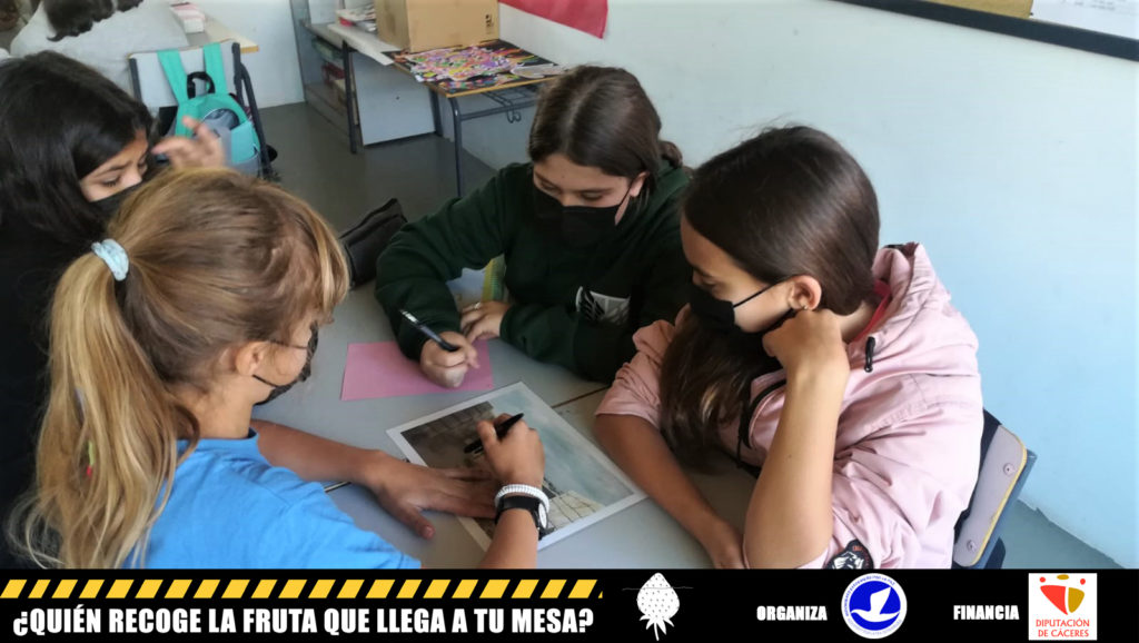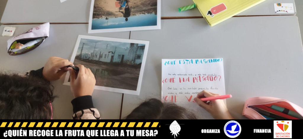 TALLERES DE SENSIBILIZACIÓN sobre las condiciones de vida de la población migrante que trabaja en la recogida de fruta y verdura en nuestro país y que se ven obligadas a aceptar unas condiciones laborales injustas y en muchos casos, al margen del sistema legal de contratación además de tener que subsistir en asentamientos chabolistas por falta de posibilidades de alquilar viviendas dignas. Estos talleres se desarrollarán en los cuatro colegios que forman parte del CRA Vía de la Plata del Valle del Ambroz (ubicados en las localidades de Segura de Toro, Gargantilla, Aldeanueva del Camino y Baños de Montemayor); en el CEIP Santísimo Cristo de la Salud de Hervás y en el IES Valle del Ambroz de Hervás.